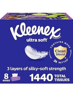 Kleenex Ultra Soft Facial Tissues, 8 Flat Boxes, 180 Tissues per Box, 3-Ply, Packaging May Vary