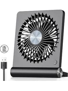 Koonie USB Fan, Strong Wind Ultra Quiet Small Desk Fan 220° Tilt Folding 3 Speeds Adjustable USB-C Corded Powered Personal Fan for Home Office Desktop Black