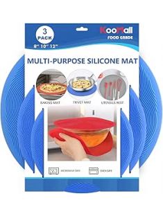 KooMall 12 10 8 Inch Multi-use Microwave Mat, Trivet, Pot Holders, Drying, Baking, Place Mat, Utensils Rest, Silicone Cover Pad for Hot Pot Pans Bowls Plates Dishes Kitchen Counter,Heat Resistant,Blue