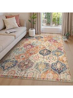 Lahome Moroccan Trellis Washable Area Rugs 5x7, 5x7 Area Rugs for Living Room Bedroom, Indoor Non-Slip Large Oriental Accent Throw Carpet for Kitchen Entryway Bathroom Office, Cream/Multi
