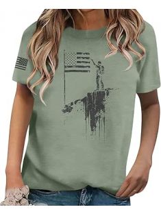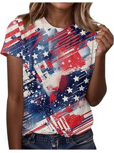 Ladies 2025 Short Sleeve Tops Fourth of July Patriotic Crewneck American Flag Independence Day Summer Tee