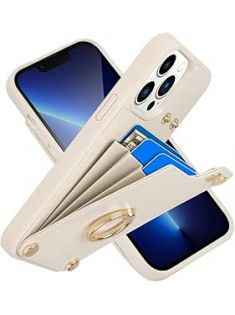 LAMEEKU Wallet Case with Card Holder for iPhone 13 Pro Max, 360°Rotation Ring Stand, Leather Kickstand Card Slots Case,RFID Blocking Shockproof Cover for Women and Men for Apple 13 Pro Max 6.7'' Beige