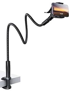 Lamicall Gooseneck Phone Holder Bed - [Nylon Braided] Flexible Arm, 38inch Overall Length, 360 Adjustable Clamp Clip, Overhead Cell Phone Mount Stand for Bed, Desk, 4-7” Cellphone