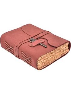 LEATHER VILLAGE Leather Journal – 200 Handmade Vintage Deckle Edge Paper – Leather bound Journal For Women Men – Vintage Key Closure - Book of Shadows - 6X4 inches (A6) - Fuchsia
