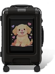 LED Display Suitcase Smart Luggage with Customizable Digital Screen, Personalized Pixel Art Animation Hardshell Rolling Check-in Bag, Black
