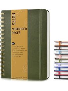 Lined Spiral Journal Notebook, A5 Hardcover Spiral Journals for Women Men, 150 Numbered Pages Spiral Bound Notebook, 100 GSM College Ruled Notebooks for Work, Note Taking 5.75" x 8.38", Olive Green