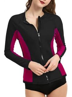 LilyCat Rash Guard for Women, UPF 50+ Long Sleeve Zip Front UV Sun Protection Jacket Swim Shirt for Women Swimwear