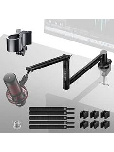 M05 Boom Arm, 360° Rotatable Microphone Stand with Desk Mount, Foldable Desk Mic Arm with 3/8'' to 5/8'' Screw Adapter, Microphone Arm for Live Streaming, Gaming, Podcasting, Radio