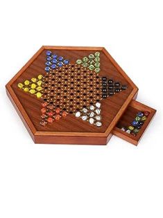 Luxurious Large 15-Inch Chinese Checkers Set - Premium Wooden Board Game for Adults and Kids with 72 Vibrant Glass Marbles, Dual-Sided Storage Drawer - Perfect for Family Strategic Game Fun Collectors