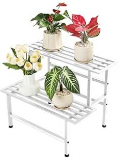Metal Plant Stand Outdoor Plant Shelf Indoor,2 Tier Heavy Duty Ladder Plant Stands for Multiple Plants,26" L x 20.25" H x 17.75" W,White