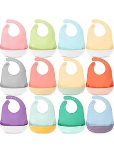 Mepase 12 Pcs Silicone Bibs Waterproof Silicone Baby Bibs Soft Adjustable Baby Feeding Bib Unisex Baby Eating Supplies (Bright Color)