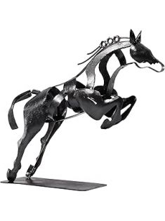 Metal Horse Statue, Western Home Decor Rustic Metal Art Horse Sculpture, Horse Decorations, Gifts for Horse Lovers (Black)