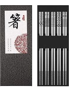Metal Chopsticks Reusable 18/8 Stainless Steel Chopsticks Multipack Dishwasher Safe Chop Sticks Cute Laser Engraved Non-slip Japanese Korean Chopstick for Cooking Eating 9 1/4 Inches 5 Pairs Gift Set
