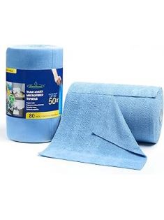 Microfiber Cleaning Cloth Roll -80 Pack, 11.5x11.5, Tear Away Towels, Reusable and Washable Rags, Blue