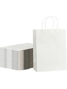 METAPRINT 100 Pack 8x4.5x10.8 Inch White Kraft Paper Bags with Handles Bulk, Paper Gift Bags for Birthday Party Favors Grocery Retail Shopping Business Goody Craft Bags