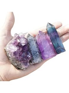 MIMOSA Healing Crystal Wands,Mini Size Natural Crystal Quartz Standing Point|1-2.5'' Amethyst Crystal,Rainbow Fluorite Crystal &Natural Black Tourmaline in Quartz Crystal Tower&Deep Amethyst Cluster