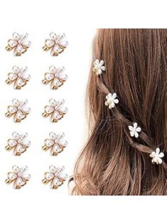 Mini Pearl Hair Barrettes for Women Girls, 10pcs Sweet Artificial Pearl Hair Clips, Flower Pins Clips for Party Wedding Daily