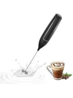 Milk Frother Handheld Battery, Electric Foam Maker Frother Wand, Drink Mixer with Stainless Steel Whisk for Coffee, Matcha, Lattes, Cappuccino Black