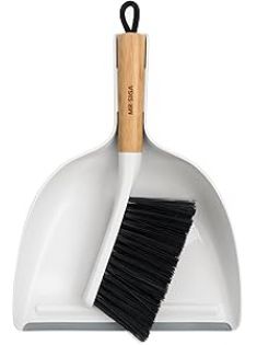 MR.SIGA Dustpan and Brush Set, Portable Cleaning Brush and Dustpan Combo with Bamboo Handle, 1 Set