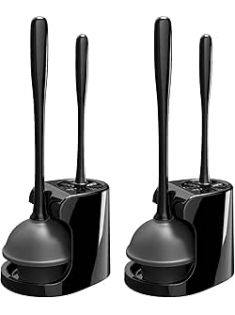 MR.SIGA Toilet Plunger and Bowl Brush Combo for Bathroom Cleaning, Black, 2 Sets