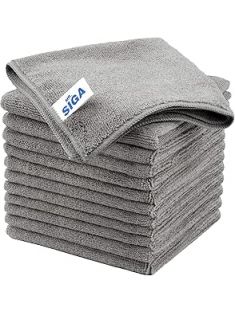 MR.SIGA Microfiber Cleaning Cloth, All-Purpose Microfiber Towels, Streak Free Cleaning Rags, Pack of 12, Grey, Size 32 x 32 cm(12.6 x 12.6 inch)