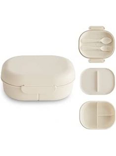 mushie Kids Bento Lunch Box | 3-Compartment & Removable Divider + Fork & Spoon Utensils | Great For Meals, School, Snacks On-the-Go | Dishwasher Safe (Ivory)