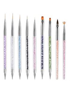 Nail Art Brushes, 9PCS Nail Brushes for Nail Art with Nail Liner Brush and Nail Dotting Pens for Home Use and Professional Nail Salon