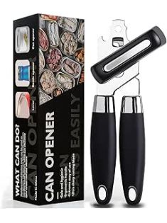 Multifunctional Stainless Steel Manual Can Opener and Bottle Opener, Heavy Duty Hand Held Can Opener with Easy Turn Knob, Sharp Blade Smooth Edge, Good Grips Kitchen Tool for Seniors, Black
