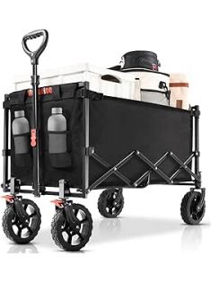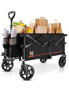 Navatiee Foldable Collapsible Wagon Cart, Utility Garden Wagon with 220lbs Weight Capacity, Heavy Duty Lightweight Portable Sport Wagon for Outdoor, Grocery, Camping, Black