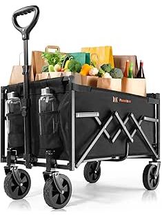 Navatiee Wagon Cart Heavy Duty Foldable, Collapsible Wagon with Smallest Folding Design, Utility Grocery Wagon for Camping Shopping Sports