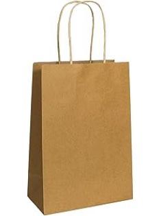 Natural 5.75" x 3.25" x 8.3" Tote Bags, Brown Paper Bags with Handles [Pack of 250] Recyclable Kraft Paper Gift Bags