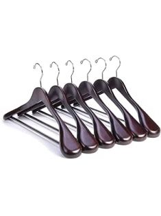 Nature Smile Luxury Mahogany Wooden Suit Hangers - 6 Pack - Wood Coat Hangers,Jacket Outerwear Shirt Hangers,Glossy Finish with Extra-Wide Shoulder, 360 Degree Swivel Hooks & Anti-Slip Bar with Screw