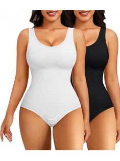 Nebility 2 Piece Shapewear Bodysuit for Women Tummy Control Slim Fit Sleeveless Round Neck Body Suit