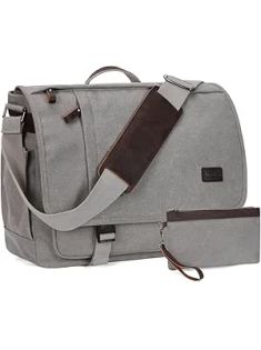 Nerlion Messenger Bag for Men 17-17.3 Inch Laptop Bag Canvas Water-resistant Computer Bag Shoulder Bag Work Briefcase Bookbag for College (Light Gray)