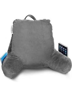 Nestl Reading Pillow Standard Bed Pillow, Back Pillow for Sitting in Bed Shredded Memory Foam Chair Pillow, Reading & Bed Rest Pillows Grey Back Pillow for Bed, Bed Chair Arm Pillow with Pockets