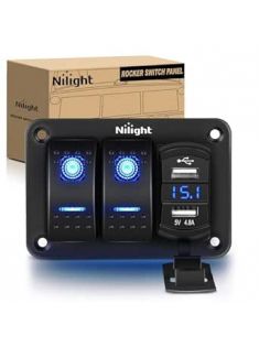 Nilight - 90116C 2 Gang Rocker Switch Panel with 4.8 Amp Dual USB Charger Voltmeter Waterproof 12V-24V DC Rocker Switch with Night Glow Stickers for CarsTrucks Boats RVs,Blue