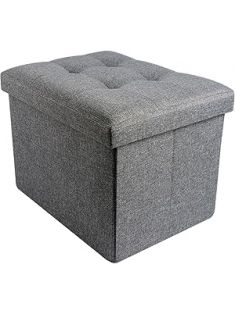 NIENIE Folding Storage Ottoman, Folding Footstools, Multipurpose Foot Rest Stool, Foldable Linen Fabric Ottomans, Small Square Ottoman Cube for Living Room, Grey, 15.7 * 11.8 * 11.8