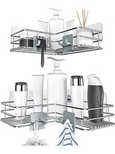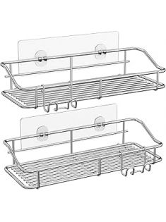 Nieifi Shower Caddy Shelf Storage Rack Adhesive Without Drilling Stainless Steel with Hooks for Washroom, Lavatory, Restroom, Toilet, Bathroom, Kitchen - 2 Pack
