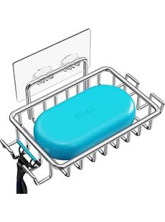 Nieifi Bar Soap Holder for Shower Wall with 4 Hooks, Stainless Steel Adhesive Soap Dish for Bathroom, Silver
