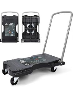 Olympia Tools Fully Folded Resin Push Cart Dolly - 330 Lb. Loading Capacity Foldable Moving Platform Cart Hand Truck - Black Collapsible Heavy Duty Folding & Rolling Flatbed Cart with 4 Swivel Wheels