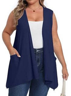 OLRIK Lightweight Plus Size Cardigan With Pocket Sleeveless Cardigans For Women Summer
