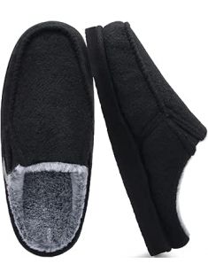 ONCAI Mens Clog Slippers with Arch Support Stripe Faux Fur Cotton-Blend High-Density Memory Foam Warm House Slippers Slip-on Indoor Outdoor Rubber Sole Size 7-16