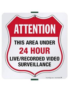 SmartSign 10 x 10 inch “Attention - This Area Under 24 Hour Live/Recorded Video Surveillance” Yard Sign with 3 foot Stake, 40 mil Laminated Rustproof Aluminum, Red, Black and White, Set of 1
