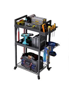 Power Tool Organizer Garage Storage Organization Shelving Tool Holder 3 Tier Drill Rack Rolling Cart Open Tools Chest Cabinet Box Organizer with Wheels Workshop Garage Gift Ideas for Men Dad Husband