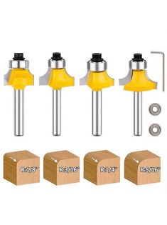 Roundover Router Bits Set,4pcs Edging Router Bits ( Radius : 1/8", 1/4", 3/16", 5/16" ) for Rounding Edge and Woodworking (1/4 inch Shank)