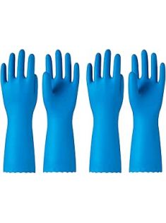 PACIFIC PPE 2 Pairs Reusable Dishwashing Cleaning Gloves, Household, Kitchen, Cotton Liner, Blue, Small