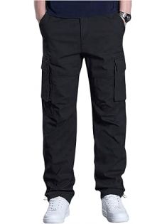 OYOANGLE Men's Drawstring Elastic Waist Flap Pockets Cargo Pants Straight Leg Casual Trousers
