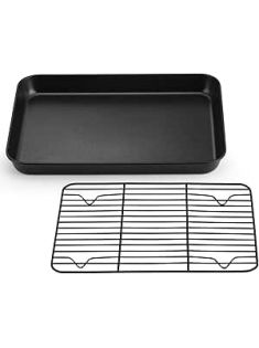 P&P CHEF Baking Oven Sheet Pan with Rack for Cookie, Nonstick Oven Tray and Cooling Rack for Baking & Roasting, Easy Clean, Black, 10.4 x 8 Inch