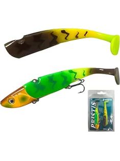 Paddle Tail Soft-Body Jig, Fishing Teasers for Saltwater Freshwater, Jig Head Soft Lure for Bass Tuna Sand Dab, Pre-Rigged Swimbait with 2 VMC Hooks & PVC Body, Baits Keeper to Install Shad