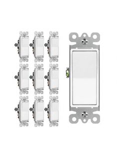 BESTTEN 10 Pack 3-Way Decorator Light Switch, 15A 120/277V, Single Pole or Three Way, Rocker Paddle Wall Switch, On/Off Rocker Interrupter, UL Listed, White